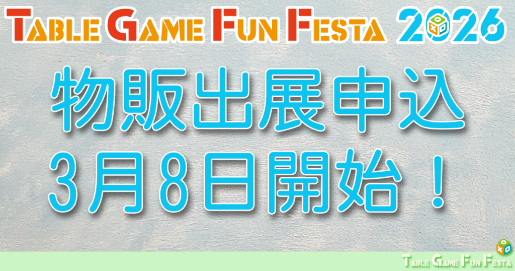 皆様、大変お待たせいたしました! アナログゲームの祭典「TGFF2026」の出展申込受付を、3月8日(日)より開始いたします。