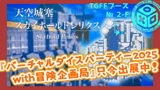 現在VR空間で開催中のVRアナログゲーム(ボードゲーム・TRPGなど)を中心とした展示会「バーチャルダイスパーティー2025 with 冒険企画局(以下、VDP2025)」にTGFFもブース出展させていただいています!(ブース№ 2-F)V...