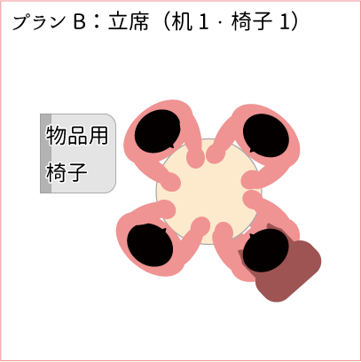 | テーブル | 180×45cm 会議机×1 | 直径60cm ハイテーブル×1 |